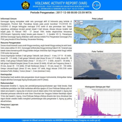 Dear Sobat Balipedia. Mimin juga update kabar Gunung Agung terkini (7 Desember 2017) yang diambil dari web MAGMA Indonesia (Badan Geologi – Pusat Vulkanologi dan